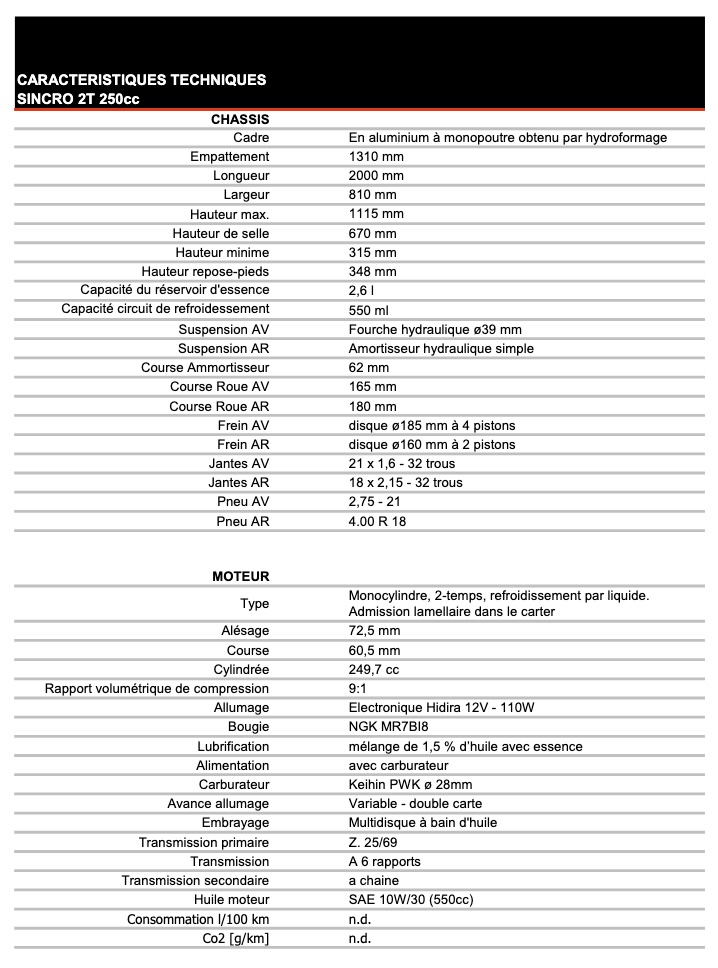 - SINCRO 250 2T TRIAL = 11,599$